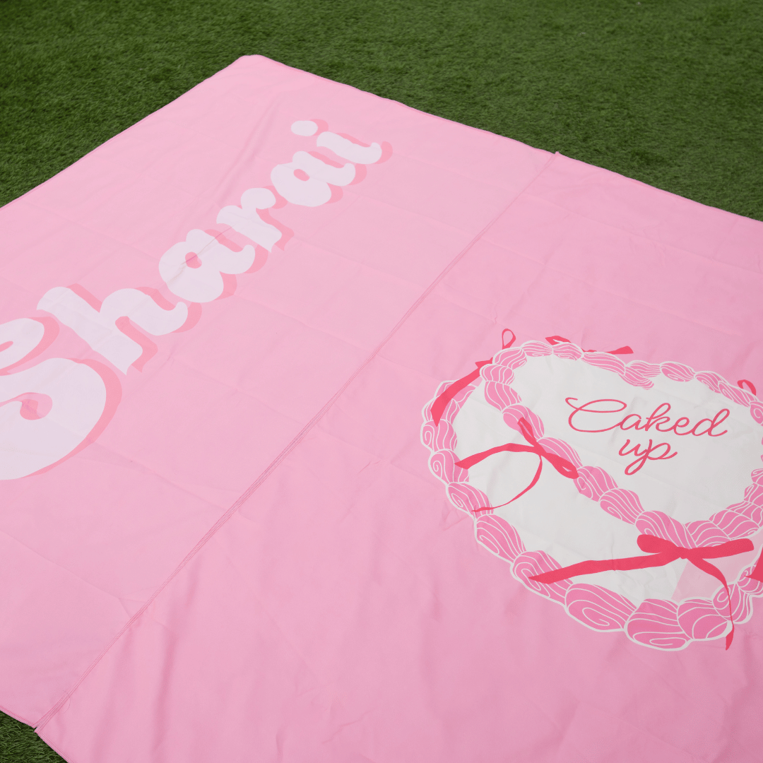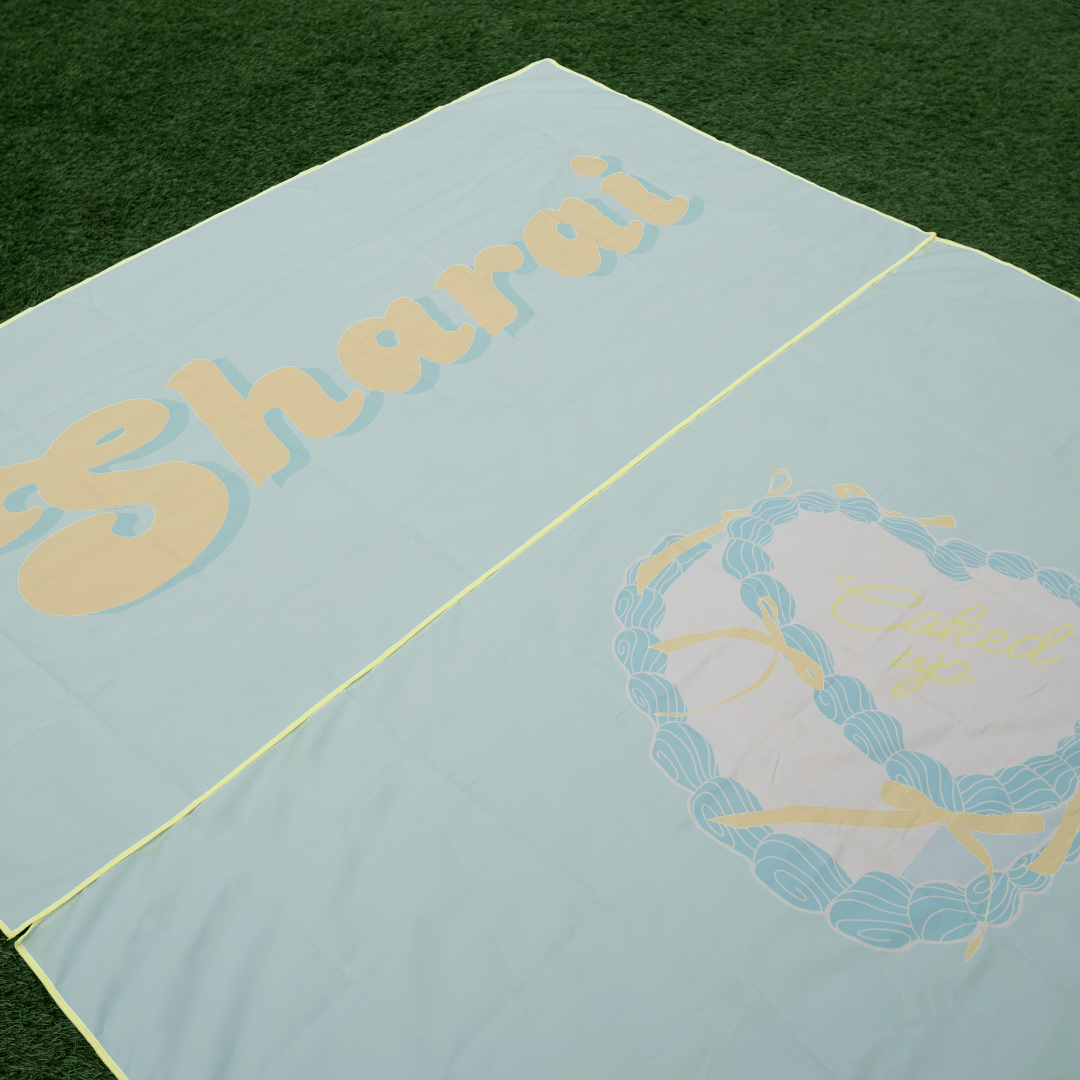 Our first beach towel! These oversized microfiber towels span 74X37 inches and are made of 85% recycled materials! All towels come with a convenient drawstring bag to easily store and carry. Pick which mood you're feeling with our double sided styles -our retro Sharai print or our adorable Caked Up logo! Available in two colorways.