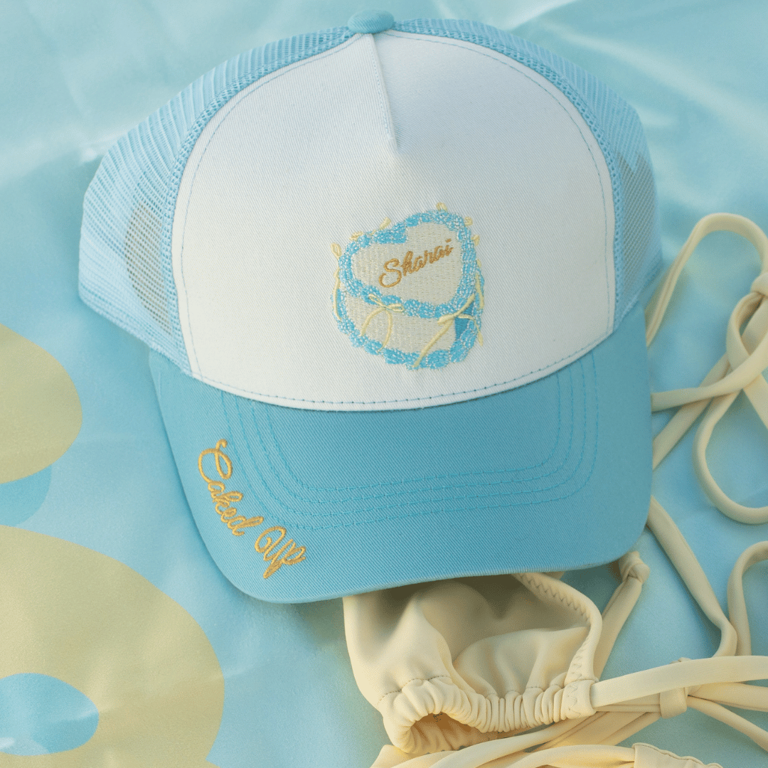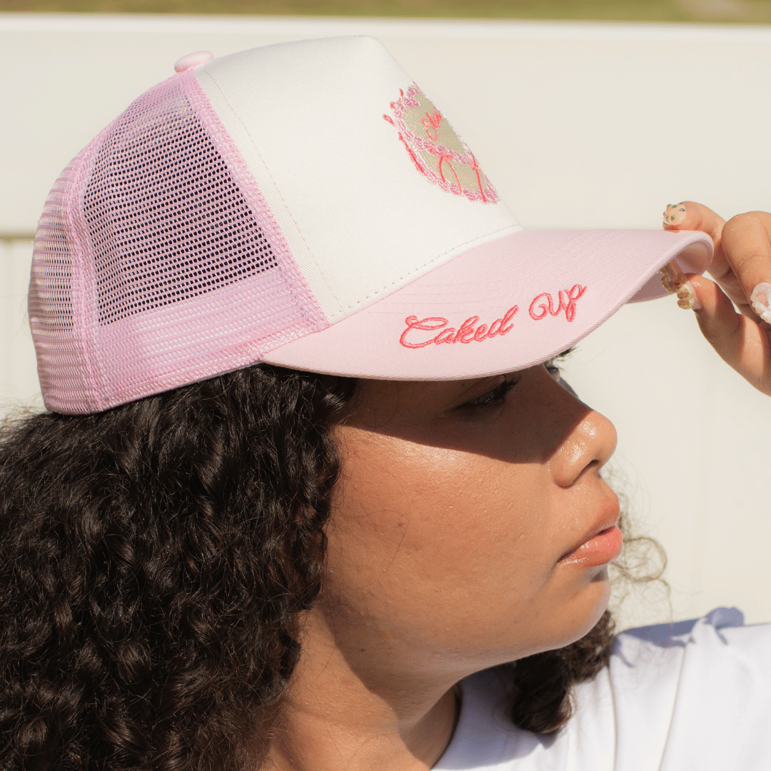 Our Caked Up truckers feature the cutest embroidered cake design on the front panel and "Caked Up" on the bill! Available in two colors.