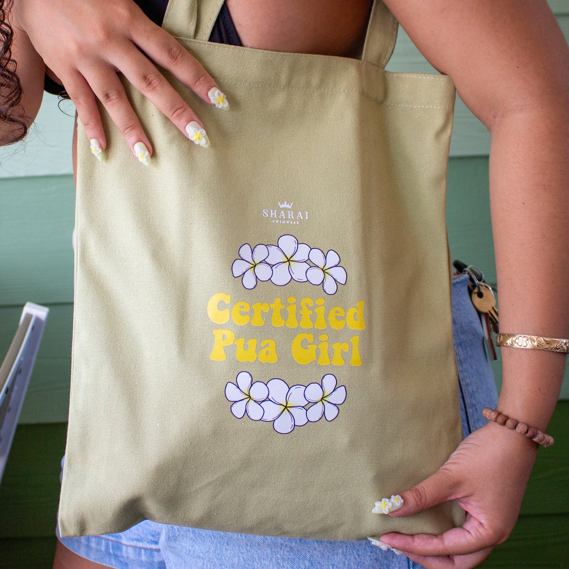 Where our pua lovers? This tote is the perfect bag for all of your summer matcha runs, beach days, and hot girl walks! Available in this gorgeous matcha green and features a printed logo and classic inner pocket!